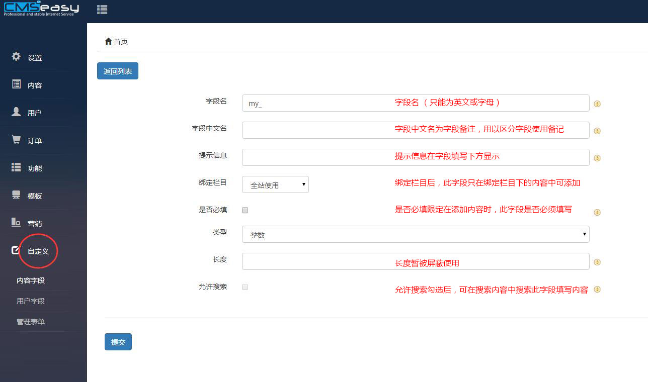 網(wǎng)站后臺 - [ 自定義 ] - [ 內(nèi)容字段 ] ,列表中找到要調(diào)用的字段。