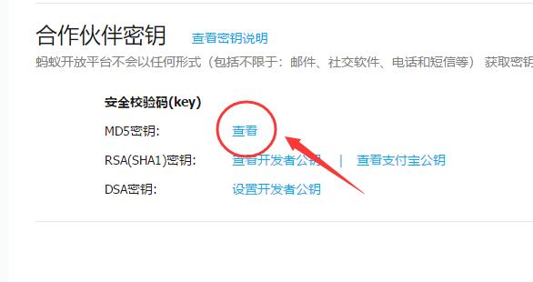(4)MD5密鑰:登錄 https://b.alipay.com 后,左側(cè) [ 查看PID|KEY ]