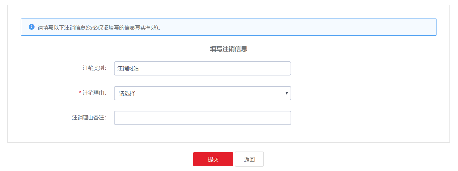 3、選擇注銷理由,填寫注銷理由備注,點(diǎn)擊提交即可