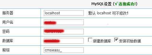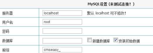 (如擁有數(shù)據(jù)庫(kù)新建權(quán)限,默認(rèn)的數(shù)據(jù)庫(kù)名稱cmseasy可不必修改,否則請(qǐng)?zhí)顚懣臻g商提供的名稱。)
